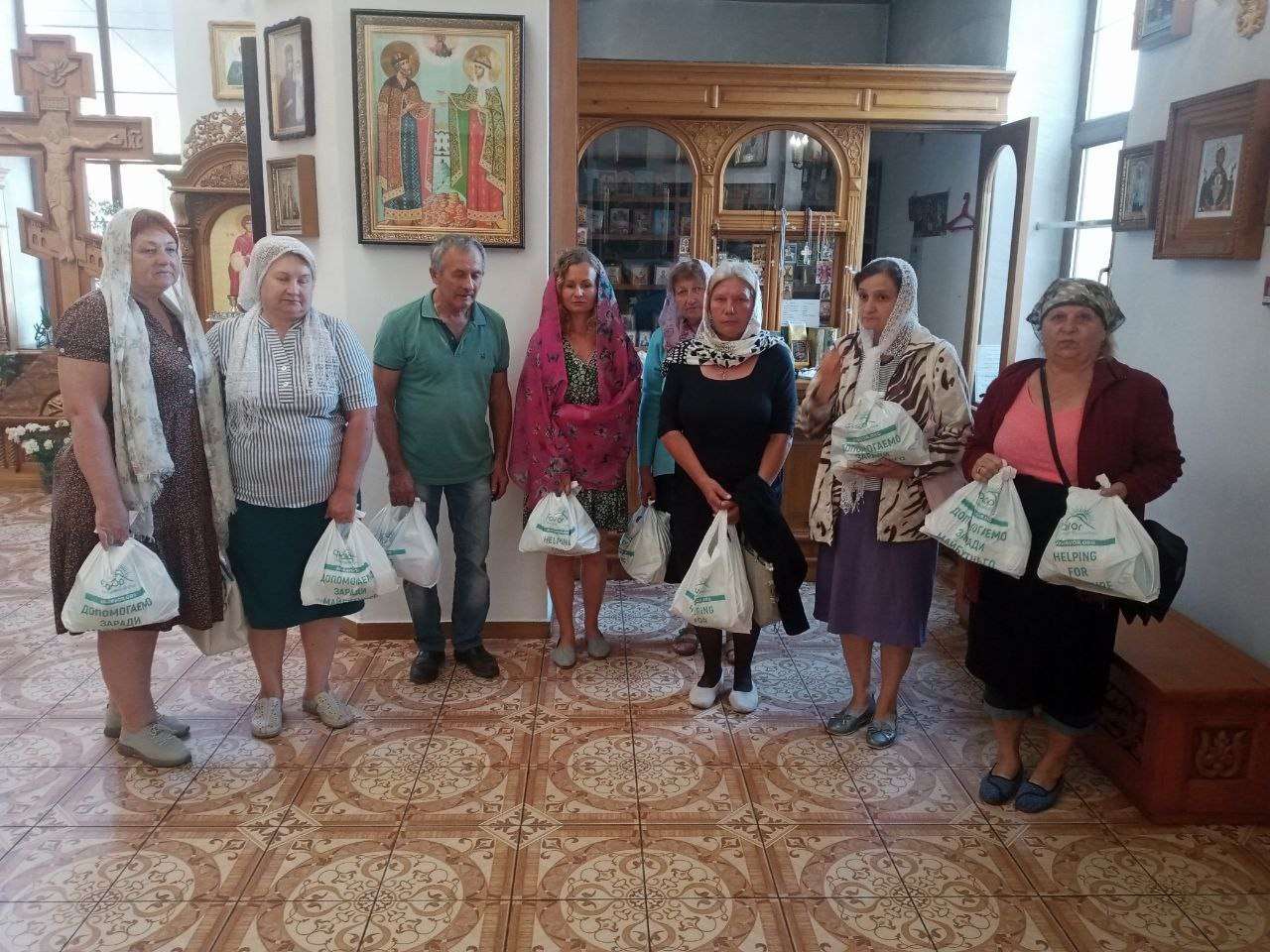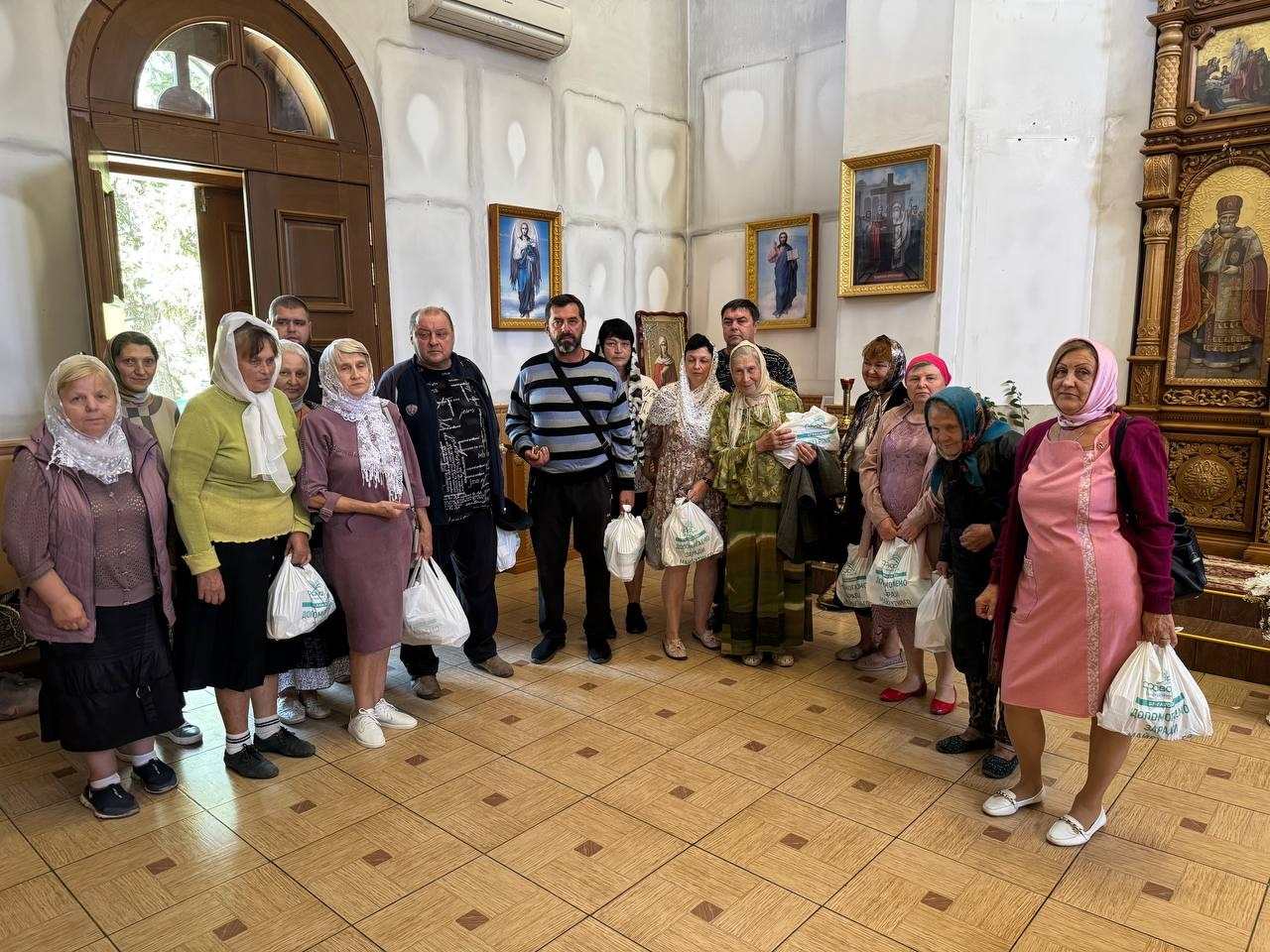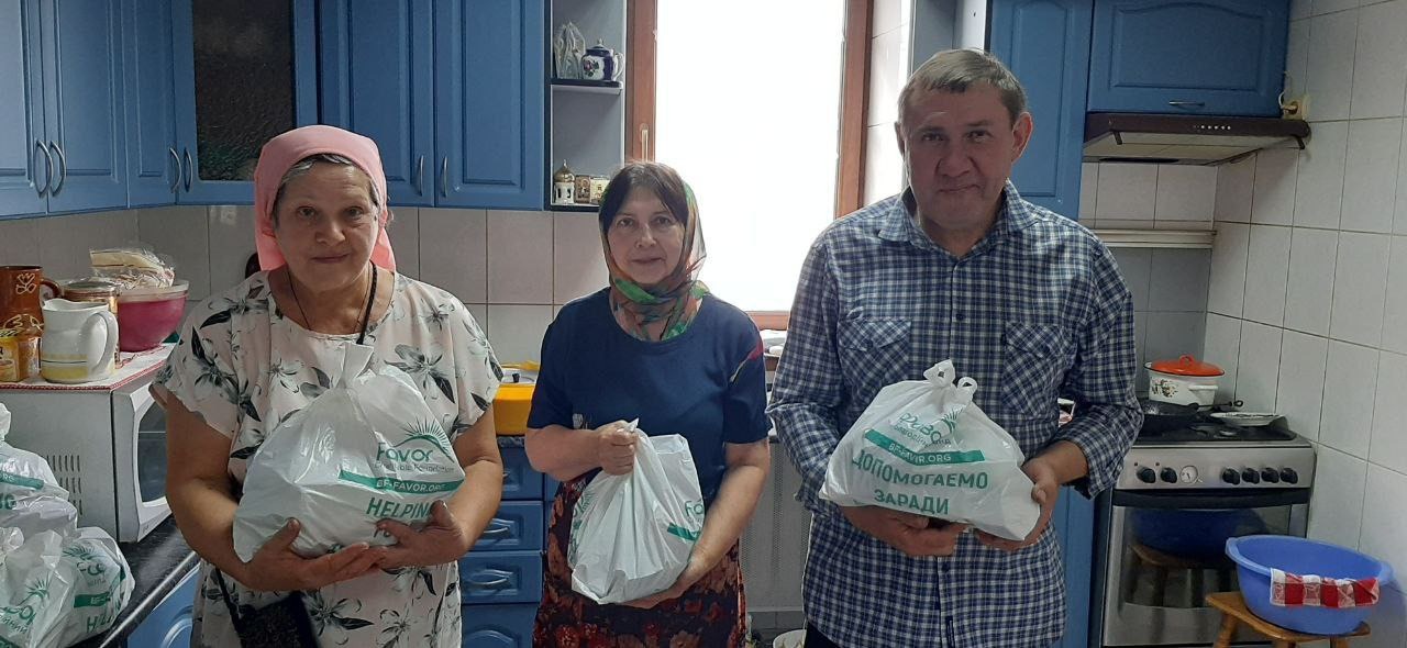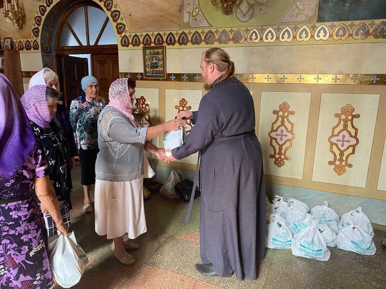 Жителям района были розданы 200 продуктовых наборов, в состав которых вошли продукты длительного хранения: мясные, рыбные и овощные консервы, чай, печенье, а также хозяйственное мыло, сухой спирт, влажные салфетки, спички и питьевая вода. Наборы получили общины: